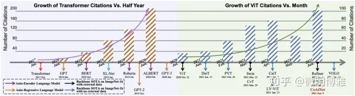 自ViT问世以来,CV开始进入膨胀期,也迎来了新一轮的红利,开始了类似于NLP中Transformer的发展趋势。从CNN开始彻底走向ViT,从supervised到self-supervised,再到大数据预训练,ViT的变种不断增加,带来的性能也在持续提升。
