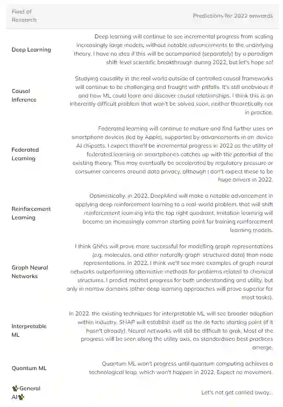 强化学习(RL)在国际象棋、围棋、扑克和 DotA 等游戏中达到了前所未有的能力水平。但在视频游戏和模拟环境之外,强化学习还没有令人信服地转化为现实世界的应用程序。机器人技术本应成为 RL 的下一个前沿领域,但这并没有实现——现实似乎比高度受限的玩具环境更具挑战性。也就是说,到目前为止,RL 的成就是鼓舞人心的,真正喜欢国际象棋的人可能会认为它的效用应该更高。我希望看到 RL 在将其置于矩阵右侧之前实现其一些潜在的实际应用。