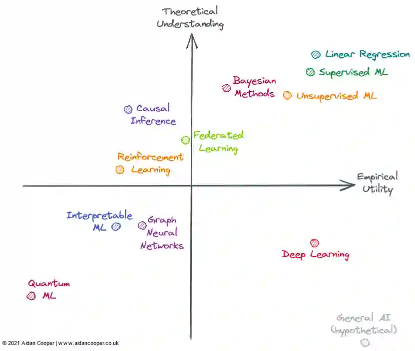 机器学习领域中,有些模型非常有效,但我们并不能完全确定其原因。相反,一些相对容易理解的研究领域则在实践中适用性有限。本文基于机器学习的效用和理论理解,探讨各个子领域的进展。