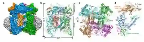 TRPML1是一种位于核内体与溶酶体膜上的阳离子通道,在哺乳动物细胞内普遍表达。如果它发生失活突变,就会导致严重的溶酶体贮积症。利用新鲜斩获诺贝尔化学奖的冷冻电镜技术,来自德克萨斯大学西南医学中心的姜有星教授课题组与白晓晨教授课题组联手获取了小鼠TRPML1通道位于nanodiscs中的结构。结构分析揭示,磷脂酰肌醇-3,5-二磷酸会结合该通道蛋白的N端,而S2与S3区域的螺旋-转角-螺旋区域可能会和配体发生偶联。此外,这个结构还发现了S4与S5区域链接部对于TRPML通道作用机制的潜在作用。