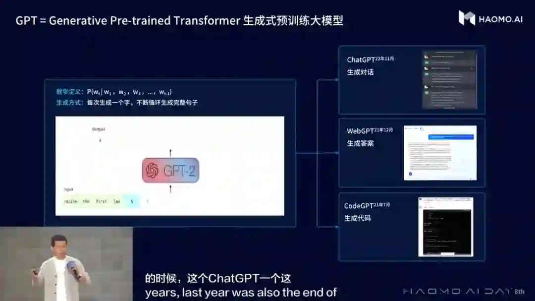 昨天(4 月 11 日),在第八届 HAOMO AI DAY 上,毫末正式对行业首发了 DriveGPT 自动驾驶生成式大模型,同时也公布了其中文名「雪湖・海若」。