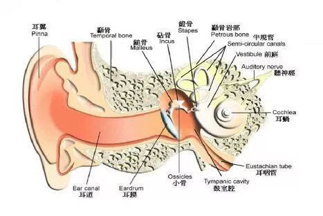 要更具体地了解听觉系统,可参考图2。它包括用于收集声音的耳朵、用于声音传递的外耳道、用于将声音变为振动频率的耳膜、耳蜗内用于将声音转为电脉冲的毛细胞、以及传输电脉冲的听神经和处理声音的听觉中枢。这里毛细胞是听觉细胞,包括3500个内毛细胞和12000个外毛细胞,以分别处理不同频率的声音。其中,低音部的毛细胞多,高音的相对较少。所以,对年纪大的人来说,首当其冲损失的是高频部分的听力能力。
