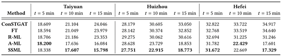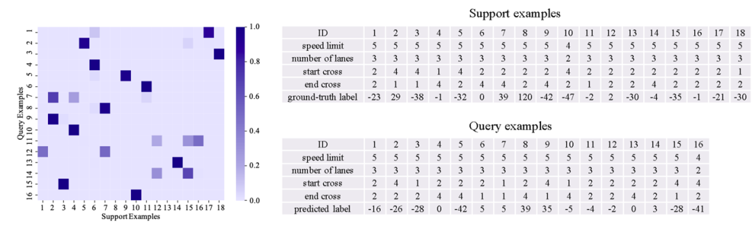 而自监督学习方法则使用数据增强的方式进一步提升元学习器的效果。论文通过人工构造大量学习任务,使用被随机遮盖对应通行时长的部分支持样本作为这些人工学习任务的“查询样本”,而剩下的支持样本作为人工学习任务的“支持样本”,使用和监督学习同样的基于注意力机制的模型结构去预测人工的“查询样本”的时长,从而达到进一步优化元学习器的效果