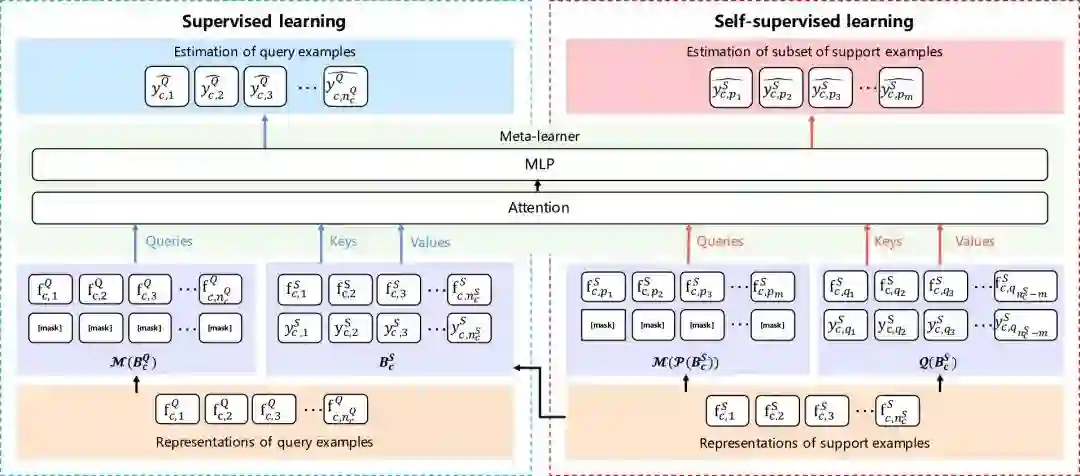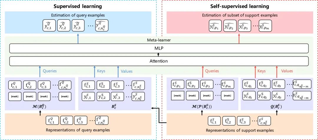 得到了样本的表示之后,论文将自监督学习与元学习器相结合,进行数据增强,进一步提升模型的预测效果。如下图所示,论文同时进行监督学习和自监督学习去训练元学习器。