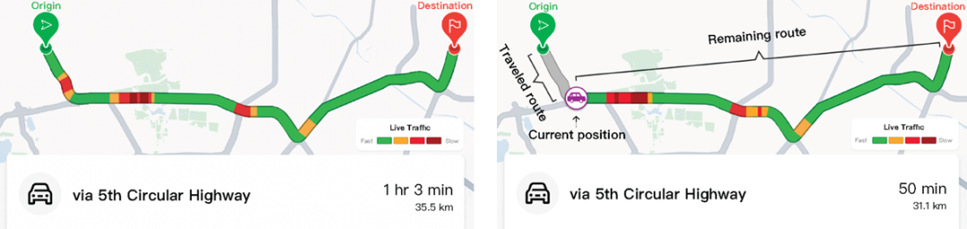这时候我们也许会想,为什么我们的导航不能更智能一点,根据我当下的情况和之前的速度重新计算到达时间呢?
