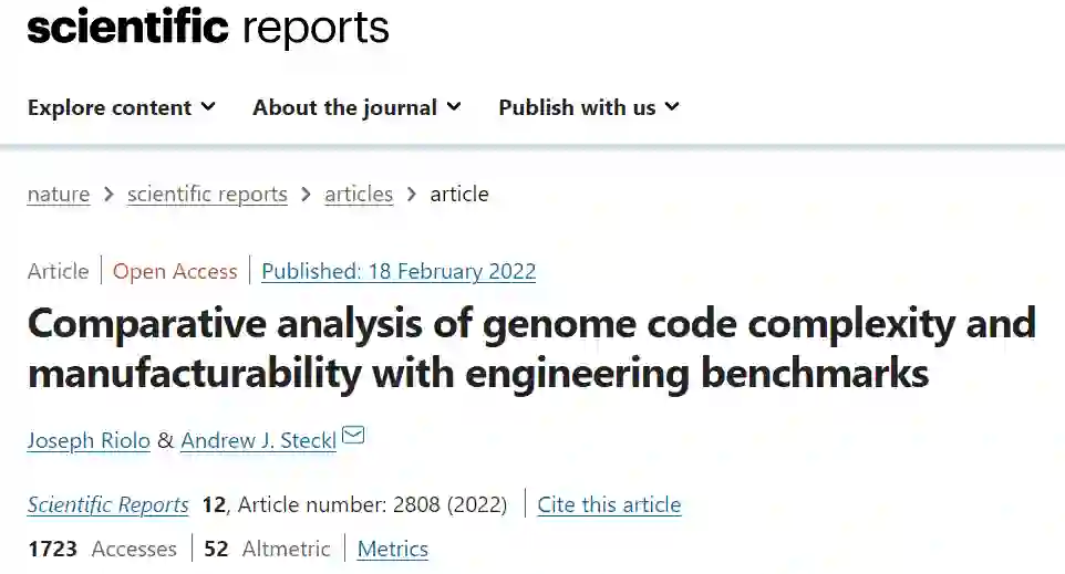 “我们能否将战斗机或火星探测器系统编程的复杂性,与创建细菌基因组的复杂性进行比较?”Steckl 问道。“它们是一样复杂还是要复杂得多?如果生物有机体要复杂得多,那就是代表了有史以来最复杂的‘编程’,以至于人类很难重复这一自然过程;也或许生物有机体的基因编码与 F-35 战斗机或豪华汽车的代码复杂程度相同。”