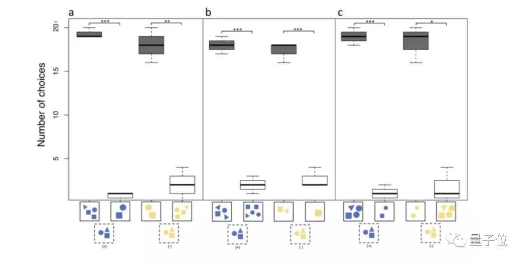 例如,假如给一条鱼看了一张有3个蓝色图标的卡片,现在的任务是算“3+1”。