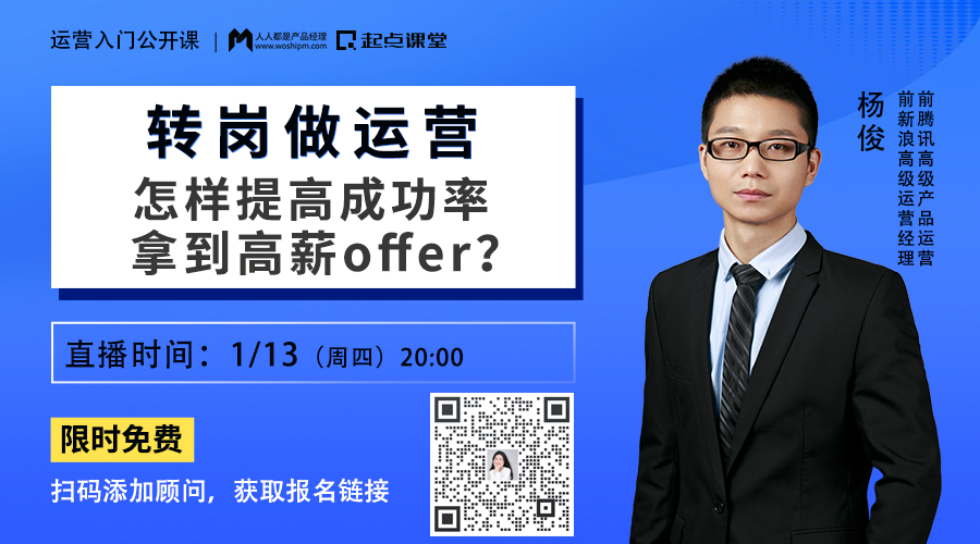 1月13日(周四)晚8点,前腾讯高级运营经理,15年资深运营大咖@杨俊老师,通过1小时直播分享,帮你解决以上问题!