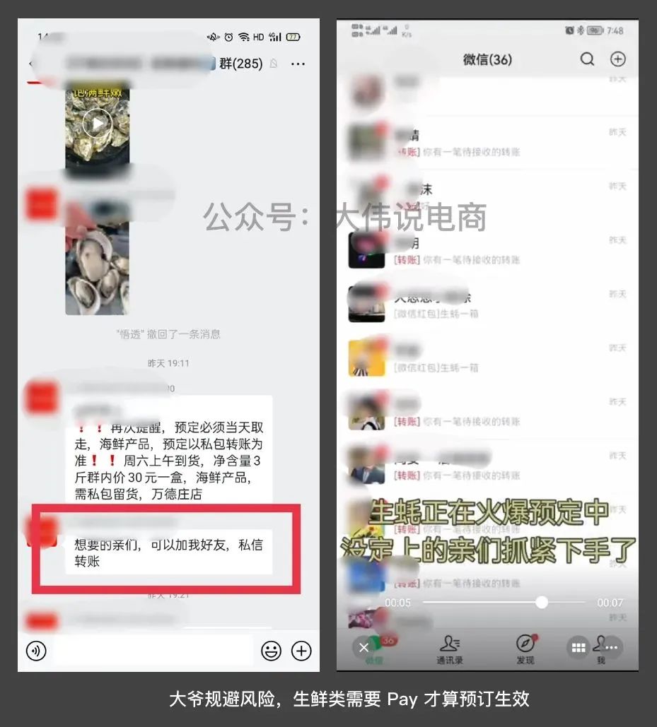 但针对那些生鲜类的,大爷会统一要求群里的用户以并私信 Pay Success 为准。