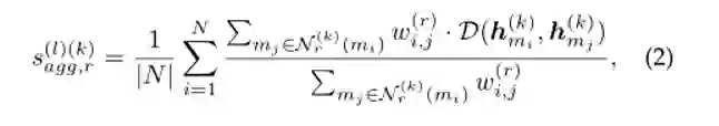 其中 是中心节点 在第k历元关系r下所有保留的邻居节点mj的集合。 为节点 和节点 在关系r下的边权值。