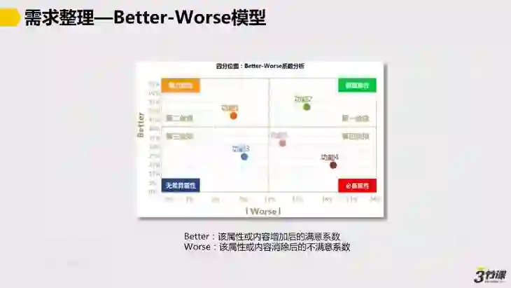 当你调研完用户后,就可以使用下图所示的Better-Worse模型来进行需求整理: