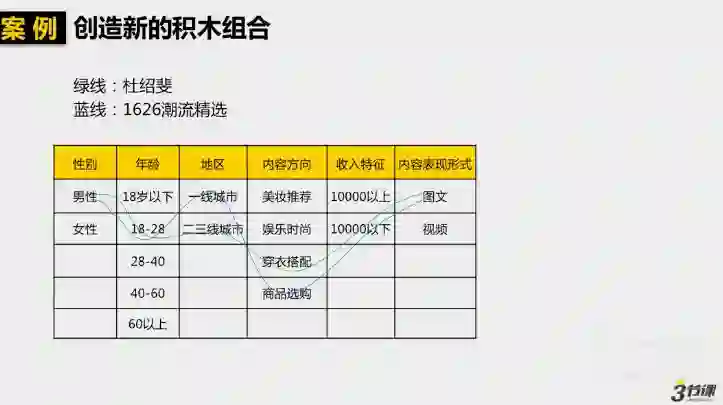 什么是“积木模型”?简单来说,就是将用户性别、年龄、地区、内容方向、收入特征、内容表现形式等标签组合在一起,视为几块“积木”,搭建起你的账号。