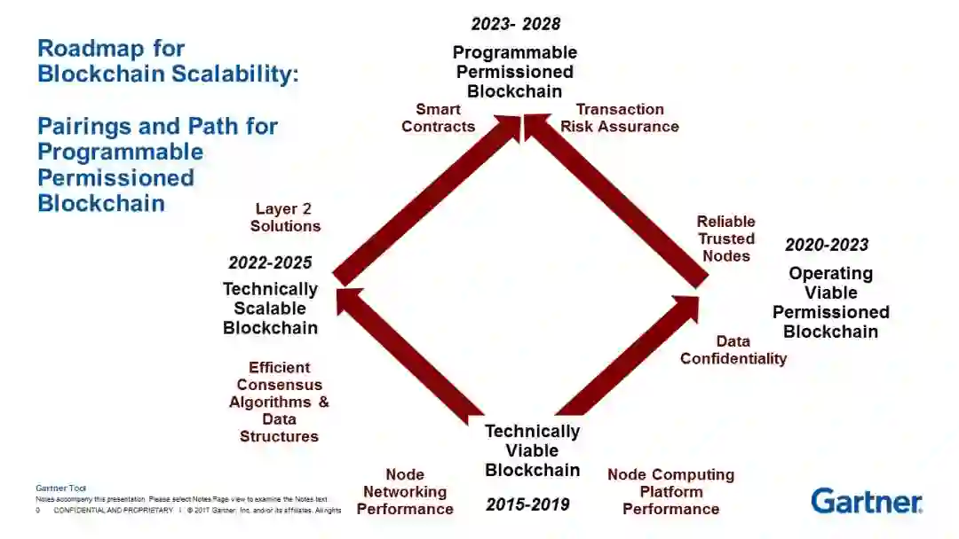 到2020年,大多数许可式区块链将使用某一种技术方法(比如侧链或虚拟链)锚定到公共区块链,但其可扩展性和运营效率要到2022年才得到广泛证实。