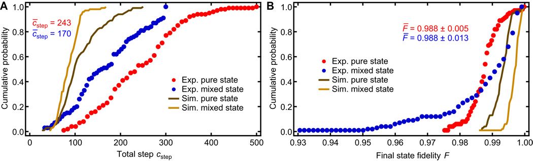 对于 m 维系统,QGAN 参数的数量为 O(m^2)。因此,该算法对于具有合理时间和量子资源消耗的实验仍然是可行的。例如,数值模拟表明,用于 2 和 3-qubit 系统的 QGAN 算法可以收敛到大于 0.95 的最终状态保真度,平均步数大约为数千步。