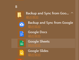 如果你之前安装过例如 Google 云端硬盘套件,那么「Google 推出的备份和同步功能」会在安装后自动对其进行替换,所以如果你和我一样桌面使用的是 Windows ,那么安装完成之后除了「Google 推出的备份和同步功能」之外,还有此前 Google 云端硬盘桌面套件:Google Sheets、Google Slides 以及 Google Docs,这些作为附赠的产品一并打包送上。