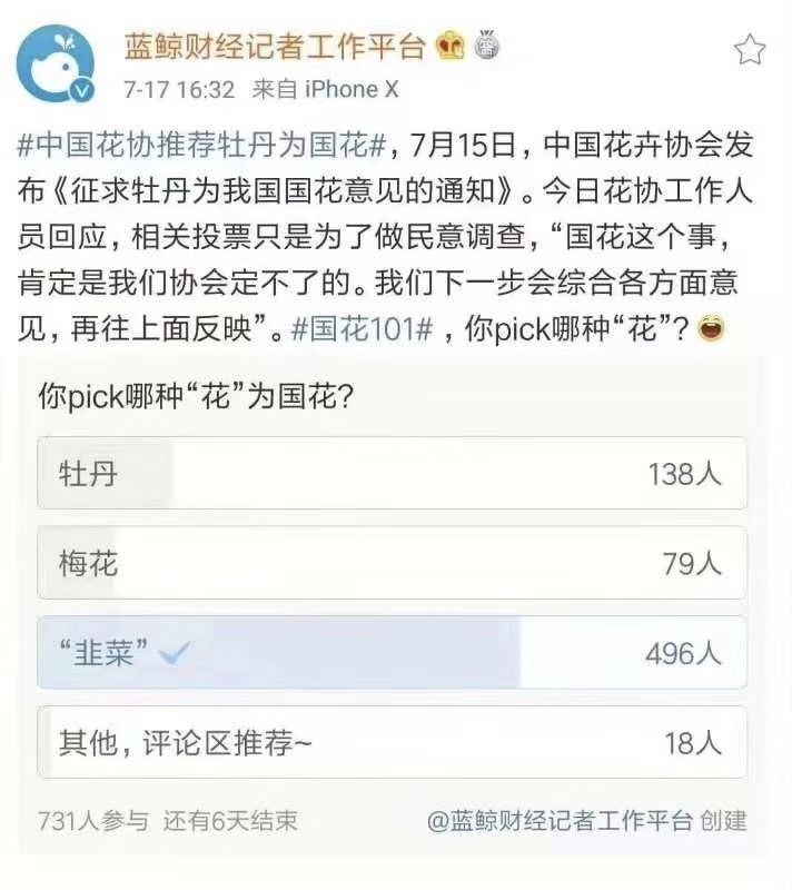 微博上话题热度也是不减,虽说“牡丹”在大众的认可里没有争议,但是出人意料的强势竞争者还是出现了——