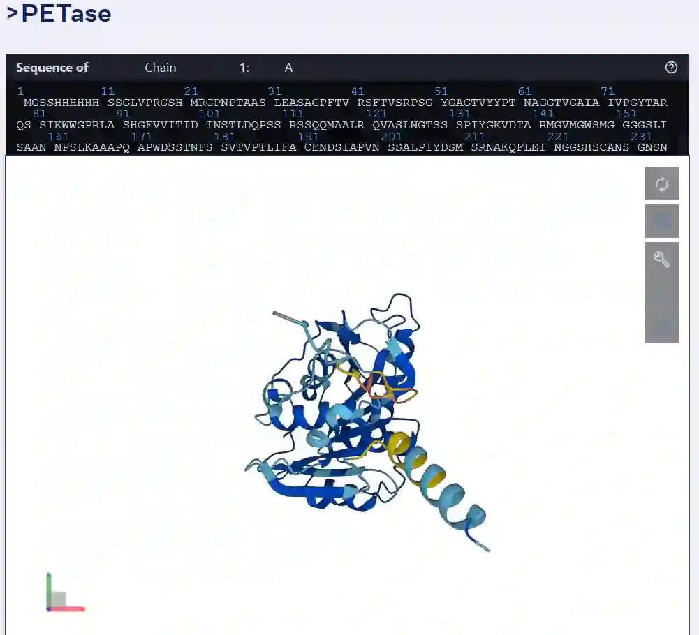 举例而言,下图为 ESMFold 对 PET 酶的预测。
