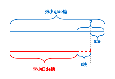 比如张小明有18颗糖,给了李小红8块,然后俩人糖就一样多了,这时候张小明和李小红应该各自有多少糖?那么李小红原先应该有多少颗糖?