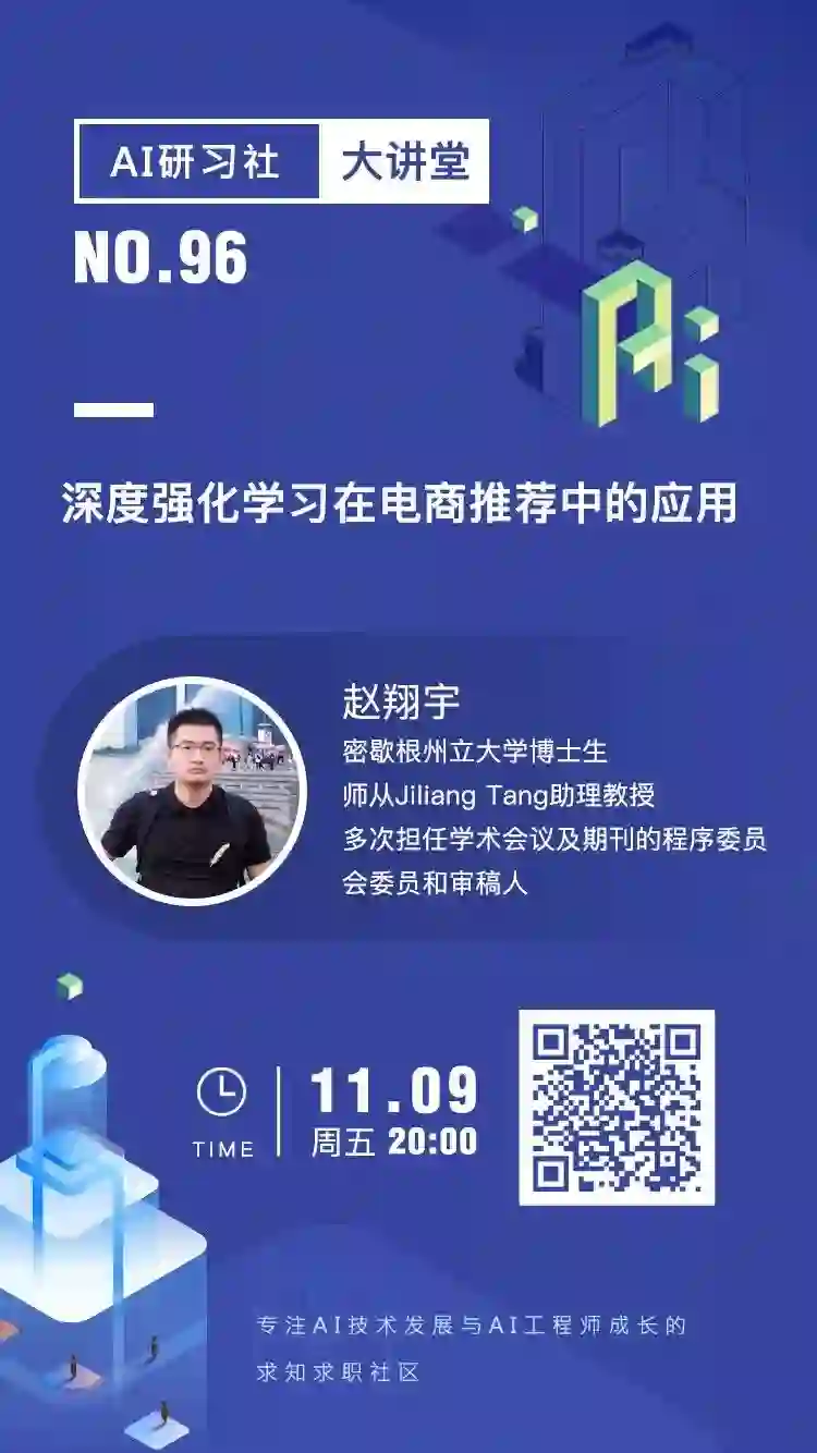赵翔宇,密歇根州立大学2年级博士生,导师Jiliang Tang助理教授,主要研究方向为强化学习,信息检索,城市计算等。其研究工作曾在KDD,CIKM,ICDM,RecSys等发表。多次担任学术会议及期刊的程序委员会委员和审稿人。更多信息 http://www.cse.msu.edu/~zhaoxi35/