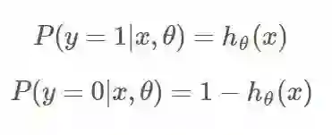 这里hθ(x)表示结果取1的概率,因此对于输入x分类结果为类别1和类别0的概率分别为: