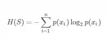 划分数据集的最大原则就是将数据变得更加有序。熵(entropy)是描述信息不确定性(杂乱程度)的一个值。设S是当前数据下的划分,那么S的信息熵的定义如下: