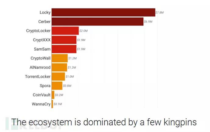 实际上这项针对勒索软件的研究是由谷歌、区块链分析公司 Chainalysis 和来自加州、圣地亚哥和纽约大学的研究人员共同发起的。他们对 34 个勒索软件家族进行分析,样本超过 30 万。基于大量数据,研究人员公布了不少图表。