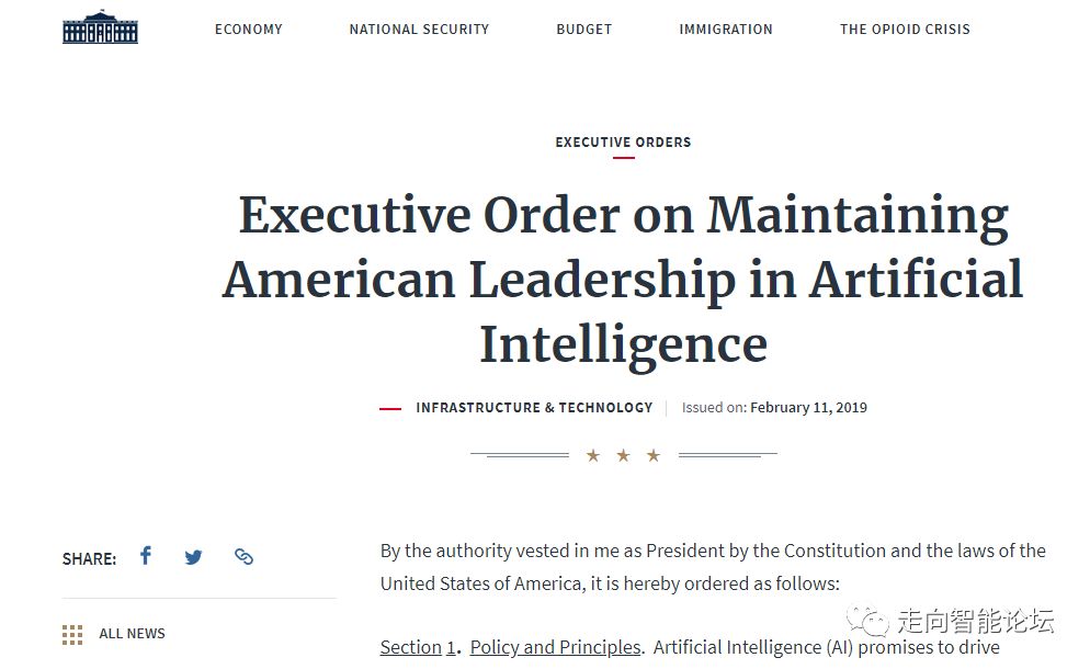近日,美国国家科技政策办公室发布了由特朗普签署的《美国人工智能倡议》(American AI Initiative)。该行政命令称,美国是人工智能研发和部署的全球领导者,美国政府将协调联邦政府战略和美国人工智能计划,以五项原则为指导,维持和加强美国在人工智能研发和部署方面的科学、技术和经济领导地位。本文综合来自:中国信息安全、澎湃新闻,由《走向智能论坛》小智整理并推荐阅读。