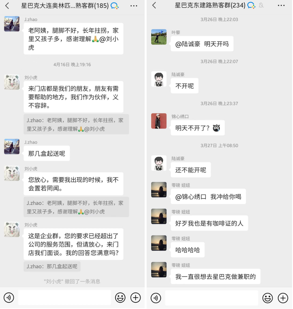 作为用户,有关订单、门店的问题可在群内提问,咖啡师会在第一时间解决。