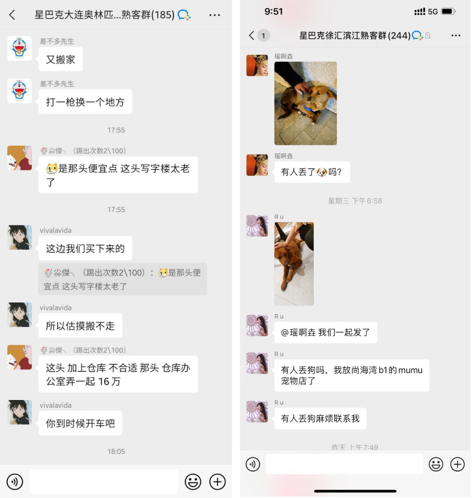 比如,看到走失的狗,在群内发布失物招领;交流工作、搬家等等。