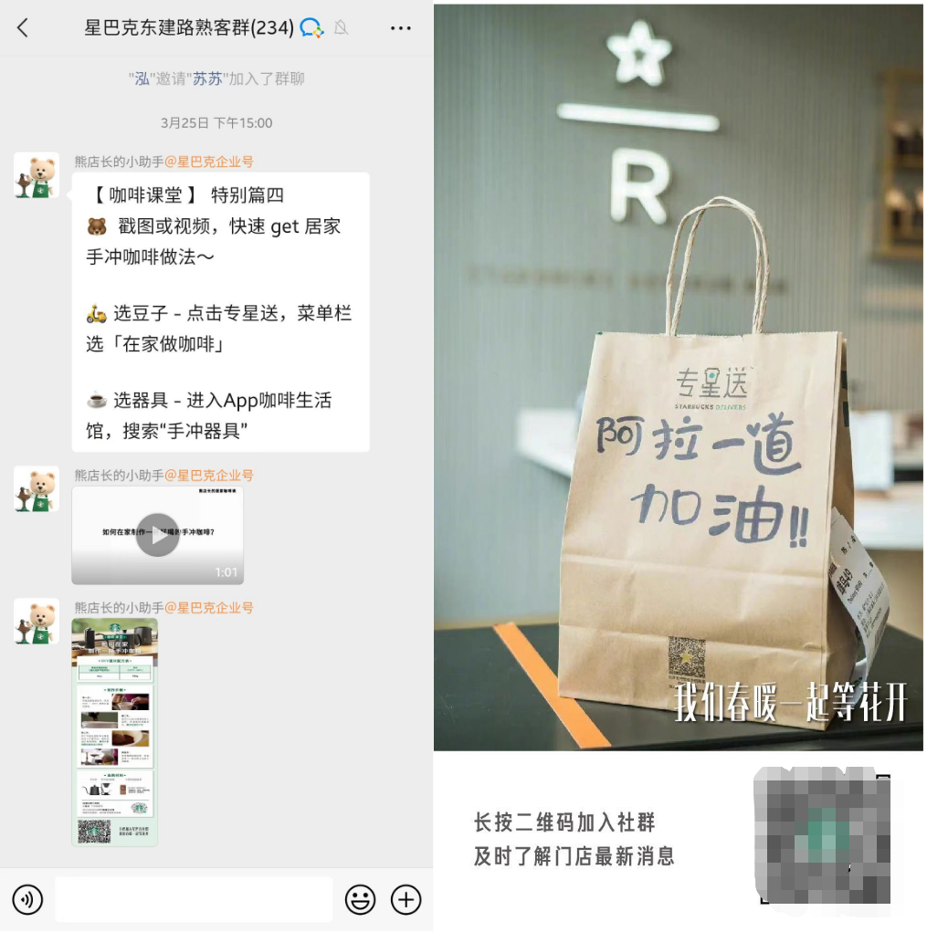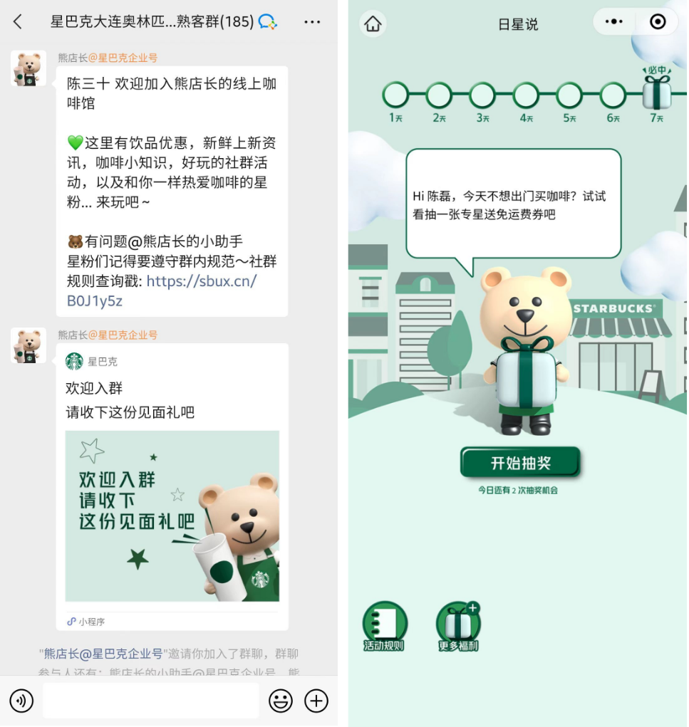 星巴克的每个门店熟客群内,都有10位左右的咖啡师在线,做有温度的服务。从问题解决、情感互动、门店活动、线下邀约至成为朋友。