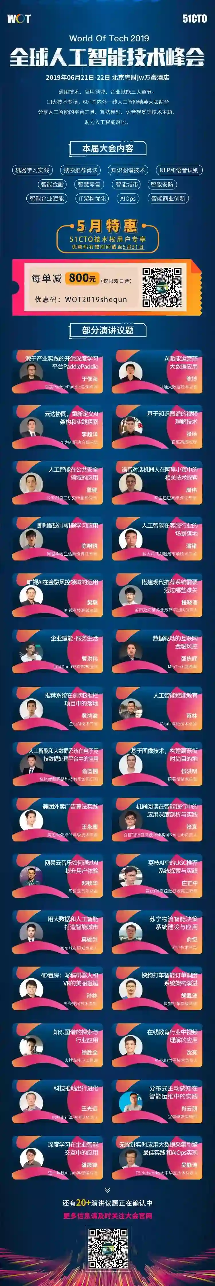 另外为了回报各位用户大大,我们特意申请了每单减 800 的超大额优惠券:WOT2019shequn,只需要在购票时填写优惠码,价格就会“嗖”的一声立减 800 元,赶紧去试试吧!(优惠码有效时间截至 5 月 31 日)