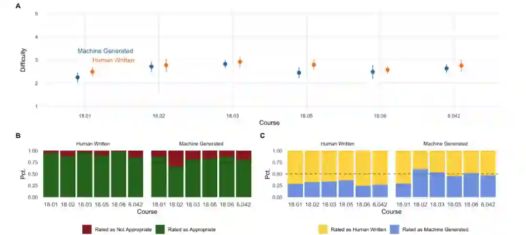 为了评估生成的问题,研究人员对参加过这些课程或其同等课程的麻省理工学院学生进行了调查,以比较机器生成的问题与课程原始的质量和难度差异。
