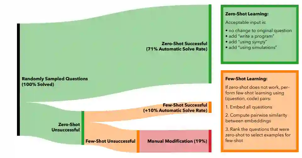 在实践中可以发现,使用最多5个例子进行few-shot learning的效果最好,可以自动解决的问题总数从zero-shot learning的71%增加到few-shot learning的81%