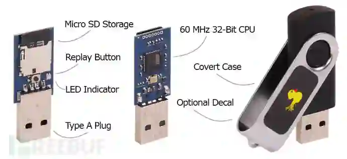 USB Rubber Ducky 是最早的按键注入工具,通过嵌入式开发板实现,后来发展成为一个完全成熟的商业化按键注入攻击平台。它的原理同样是将 USB 设备模拟成为键盘,让电脑识别成为键盘,然后进行脚本模拟按键进行攻击。