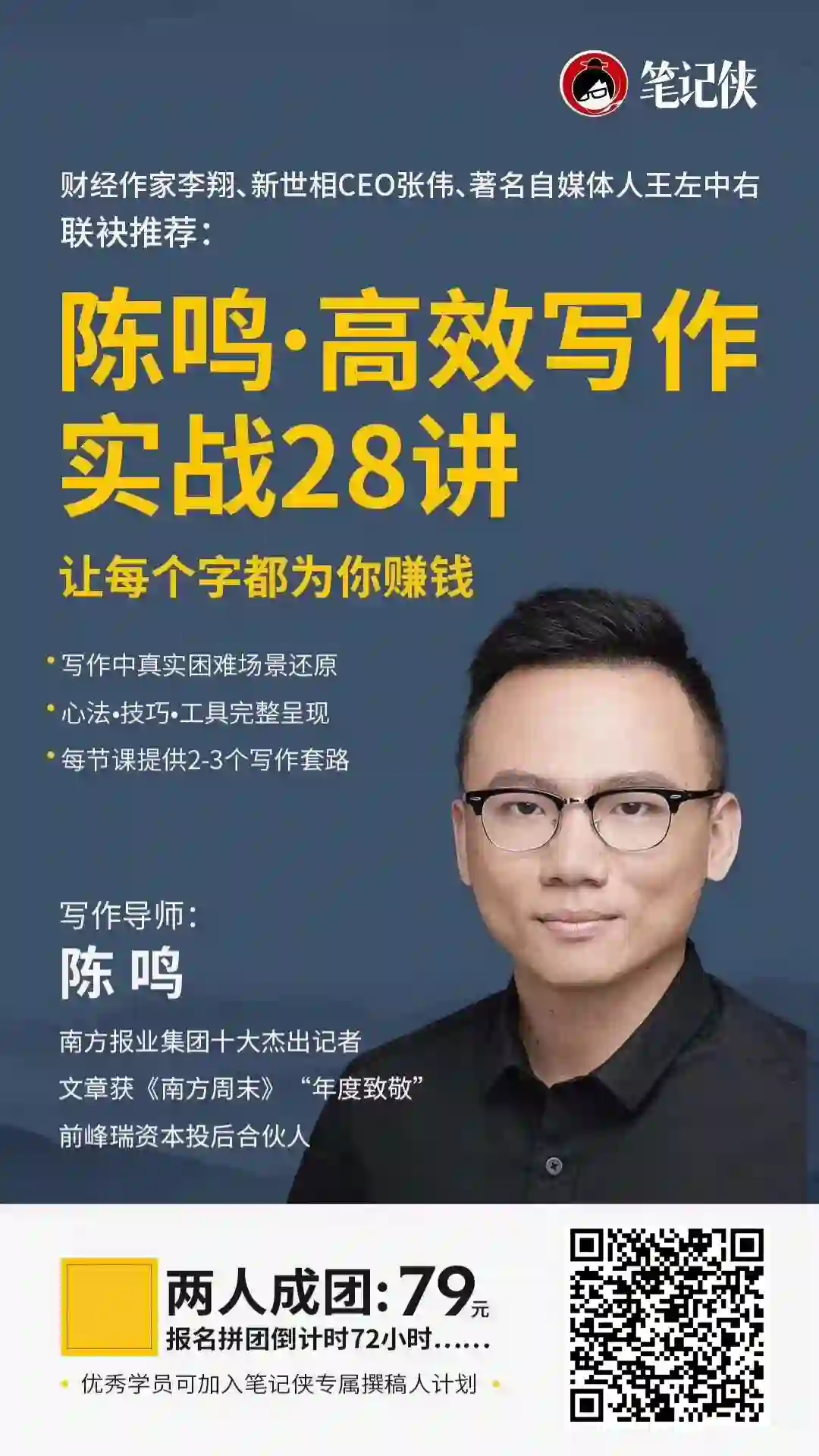 (关注笔记侠公众号,回复“写作课”三个字,可获得陈鸣写作课28讲知识卡片)