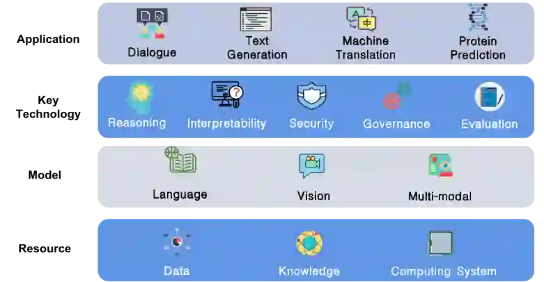 《A Roadmap for Big Model》由悟道大模型研究项目负责人,智源学术副院长,清华大学计算机系教授唐杰牵头,从大模型基础资源、大模型构建、大模型关键技术与大模型应用探索4个层面出发,对15个具体领域的16个相关主题进行全面介绍和探讨。下图给出了文章的整体框架结构和15个领域的具体内容。其中,资源层的计算系统领域中,除了对系统本身的介绍外,还包括了独立的并行计算章节,因此总计形成了16个主题。下面,我们将对文章的每个主题内容进行简要的介绍和概括。(点击阅读原文即可下载查看报告)