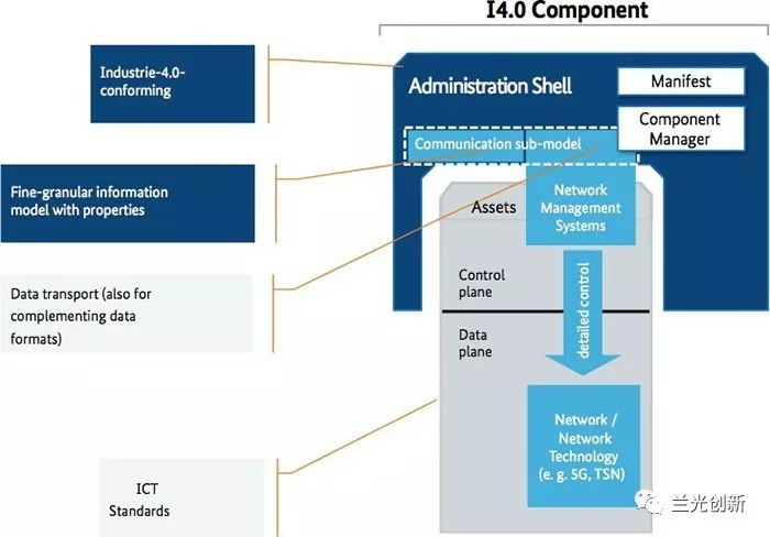 按照德国工业 4.0 的顶层设计的思路明显可见,工业4.0 的基础是在工业生产价值链各个环节所发生的所有实例的全部信息,都应该通过面向应用的联网,构成信息的高可用性。信息的可用性越高,价值增值的可能性越大。这表示RAMI4.0 参考模型的通信层需要确保不同工业 4.0 基本单元之间及时、可靠、安全的信息传输。同时,这些通信技术也必须完全支持 RAMI4.0 参考模型的递阶(hierarchy)维度各层级内和各层级间的通信要求。由此可以推断,相关的通信系统(包括商用的技术、网络和协议)也是工业 4.0 中的关键资产。为了使各种工业 4.0 的基本单元能进行符合工业4.0 要求的端对端通信,它们也需要一个管理壳。