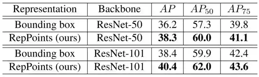 这篇论文提出了一种新的物体表示方法,用一个代表性点集来表示物体,称作 RepPoints (representative points):