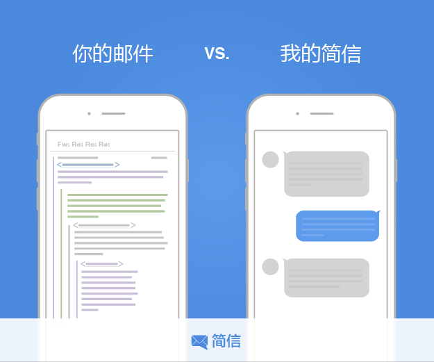 同时,简信会对邮件进行实时同步和解析,把邮件从一个繁琐的格式转换成商务对话的格式,再向客户端提醒,保证用户可以收到对话形式的即时邮件。