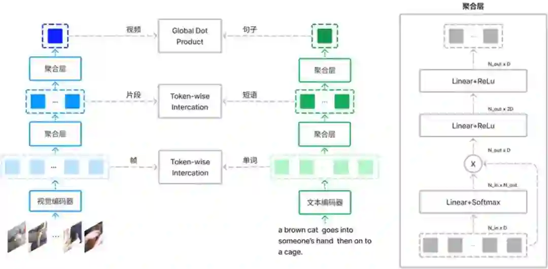 混元AI大模型的双塔 Transformer,通过层级化对比学习,学习视频和文本两种模态的不同粒度的相似度。
