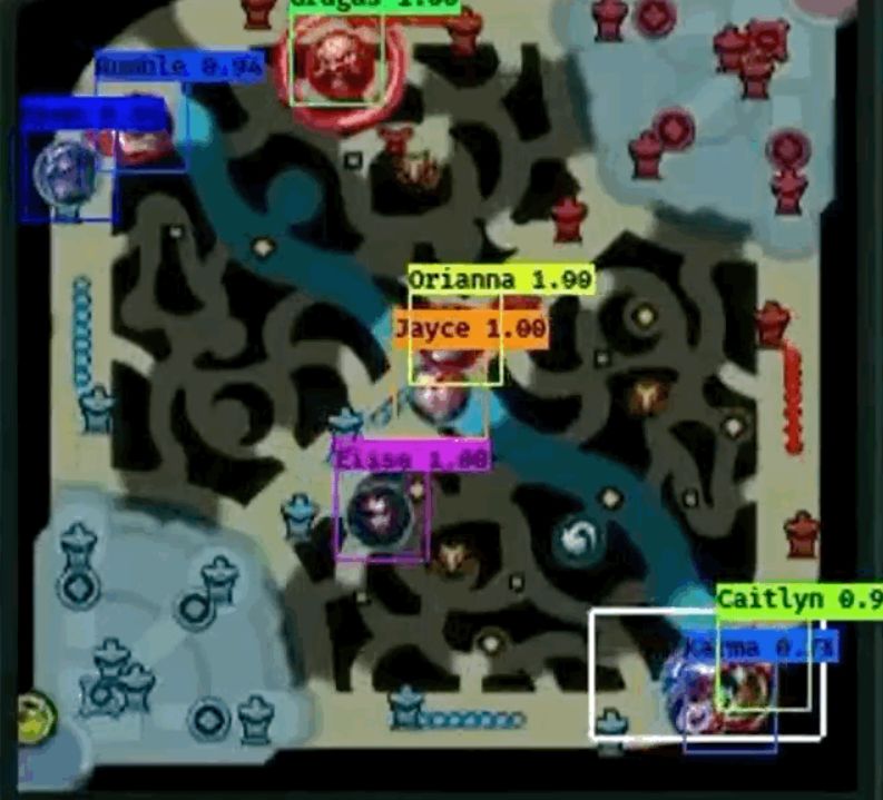 通过分析比赛小地图中英雄的名称、坐标、路径、战绩等信息,DeepLeague 可推断出蹲草丛、打野、团战、打大龙的最佳时机。另外,如果你把 Faker 的 VOD 输入该系统,DeepLeague 还能学习他的打法和技巧。