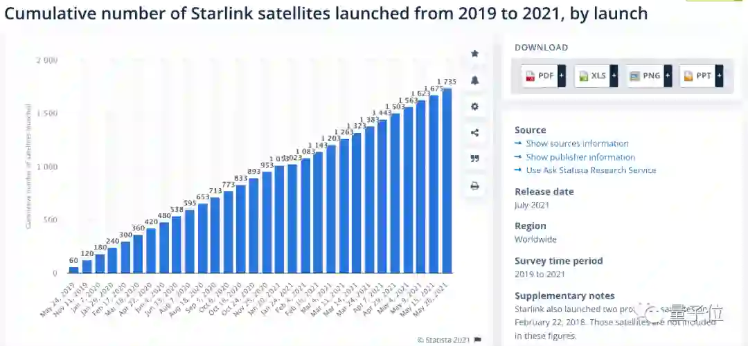而且,除去失败或脱离轨道的卫星,目前运行的卫星总数共有1775颗。