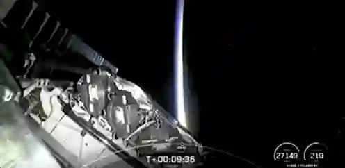 在大约2分40秒左右,猎鹰9号的第一级火箭关闭其发动机,完成分离。