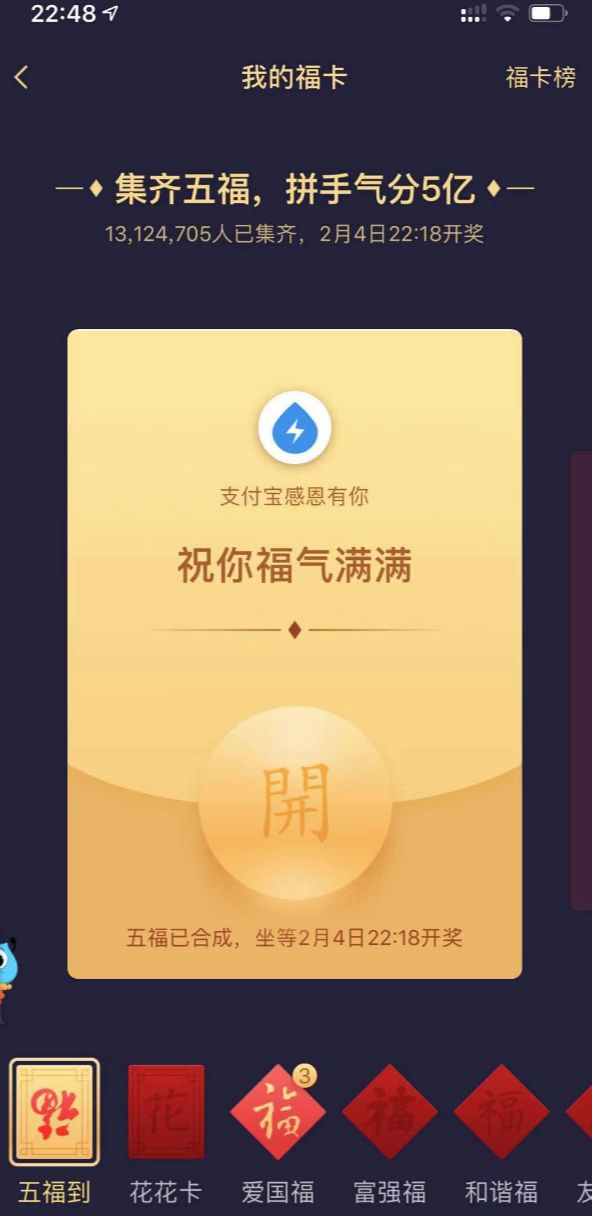 到这个阶段,笔者觉得集五福已经不仅仅是用玩法和利益刺激用户了,而是让用户感知到了“新年祈福”的意味。