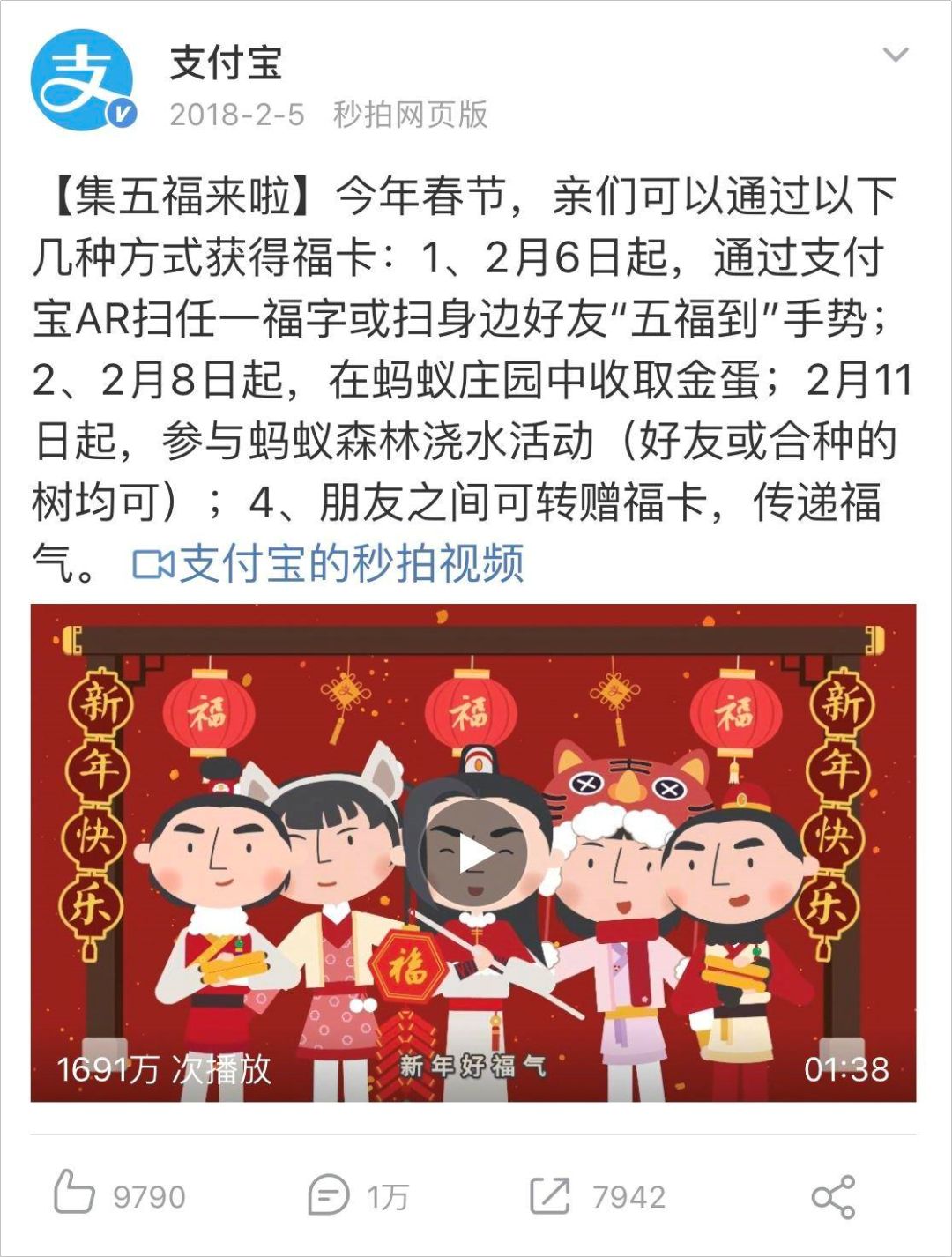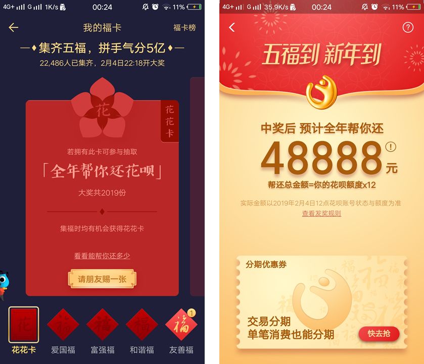 这一年,集五福的“年俗”地位基本奠定,用户已经逐渐习惯过年集五福。