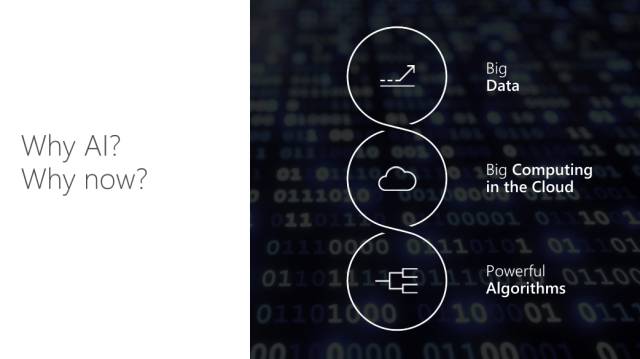 人工智能在1960年左右就已经开始了,那为什么在过去这几年人工智能这个洪流又开始爆发了呢?主要有几项: