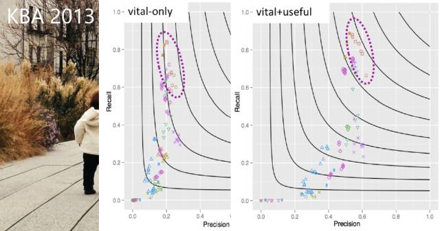我们在2013年的时候就做到了最好的效果。我们的系统可以找到vital(最重要而且相关)的信息,就是说机器找到的新闻确实是非常相关的而且有必要记录的。比如,微软买了某个公司,这个跟微软是非常相关,但是,某个人买了微软的某个产品,也是跟微软相关的,但是普通人买其实没那么重要,但如果是哈工大买微软的某个产品那就很重要了,这也是vital和useful的差别。