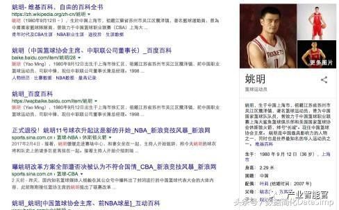 如前所述,知识图谱的活跃得益于Google的Knowledge Graph项目。Google通过构建知识图谱,将内部信息资源都唯一的关联起来。例如“姚明”是知识图谱中的一个实体,包含相关的一些属性例如出生时间、地点、身高。同时,可以将搜索引擎中所爬取的和“姚明”相关的文档和图片都与这个实体关联起来。Google的知识图谱项目中最早的应用方式就是在搜索引擎返回结果里面提供“知识卡片”。传统的搜索引擎返回界面中,通常是查询词所匹配的文档列表,如图4左面所示。然而在2012年5月16日以后的Google的搜索引擎返回结果中,如果查询词匹配了Google的知识图谱中的某个实体,Google还会以知识卡片的形式返回这个实体的一些属性和其他实体的关系。例如当我们搜索“姚明”时,Google会返回如图4右边所示的知识卡片,包括姚明的出生时间、地点、身高,以及他的妻子叶丽;甚至包括相关联的姚明的图片。