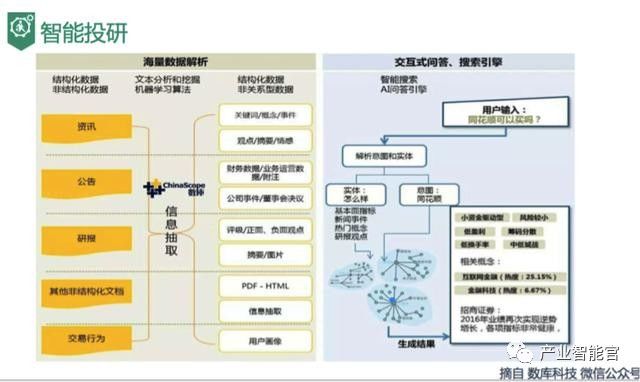 比如你向同花顺i问财 提问“同花顺可以买吗?”,它首先需要理解你要问的是什么:意图是同花顺这个公司,实体是怎么样,要不要买;然后把它转化到庞大的底层知识图谱中去做搜 索,最后返回给你想要的结果,比如同类型的事件当时同花顺股票涨跌的概率等。