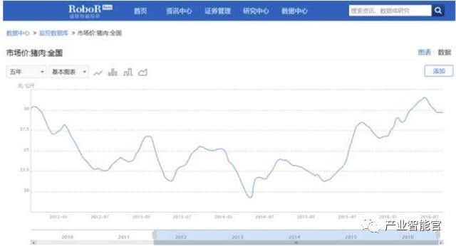 你现在对知识图谱有了大致了解,那我们再以通联数据萝卜投研揭秘猪肉价格上涨背后的产业链投资机会,来看看这个类似哈利波特手中的“神奇魔杖”到底已经如何 运用到金融科技的前沿领域中了。 在2015年7月,萝卜投研的数据监控系统对猪肉价格发出异动提醒,这时我们注意到猪肉价格自4月以来,已连续上涨超过 20% 。